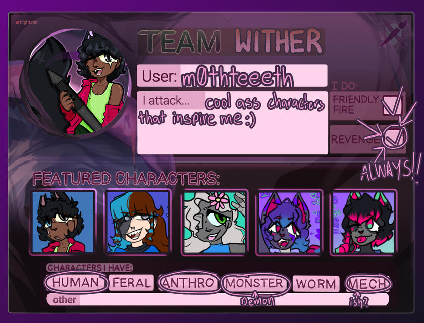 Hello, I'm moth!! I go by he/they, I'm a demi-boy and I'm bisexual! I'm a furry artist and I love a whole lot of things, like star wars, The owl house, neon genesis Evangelion, Destiny 2, COD black ops, and more! I'm sure that if you're into it, I've at least heard of it and I would be more than happy to listen to you :) I am a little shy, so appologies if I am Quiet, but Im always looking to make new friends.